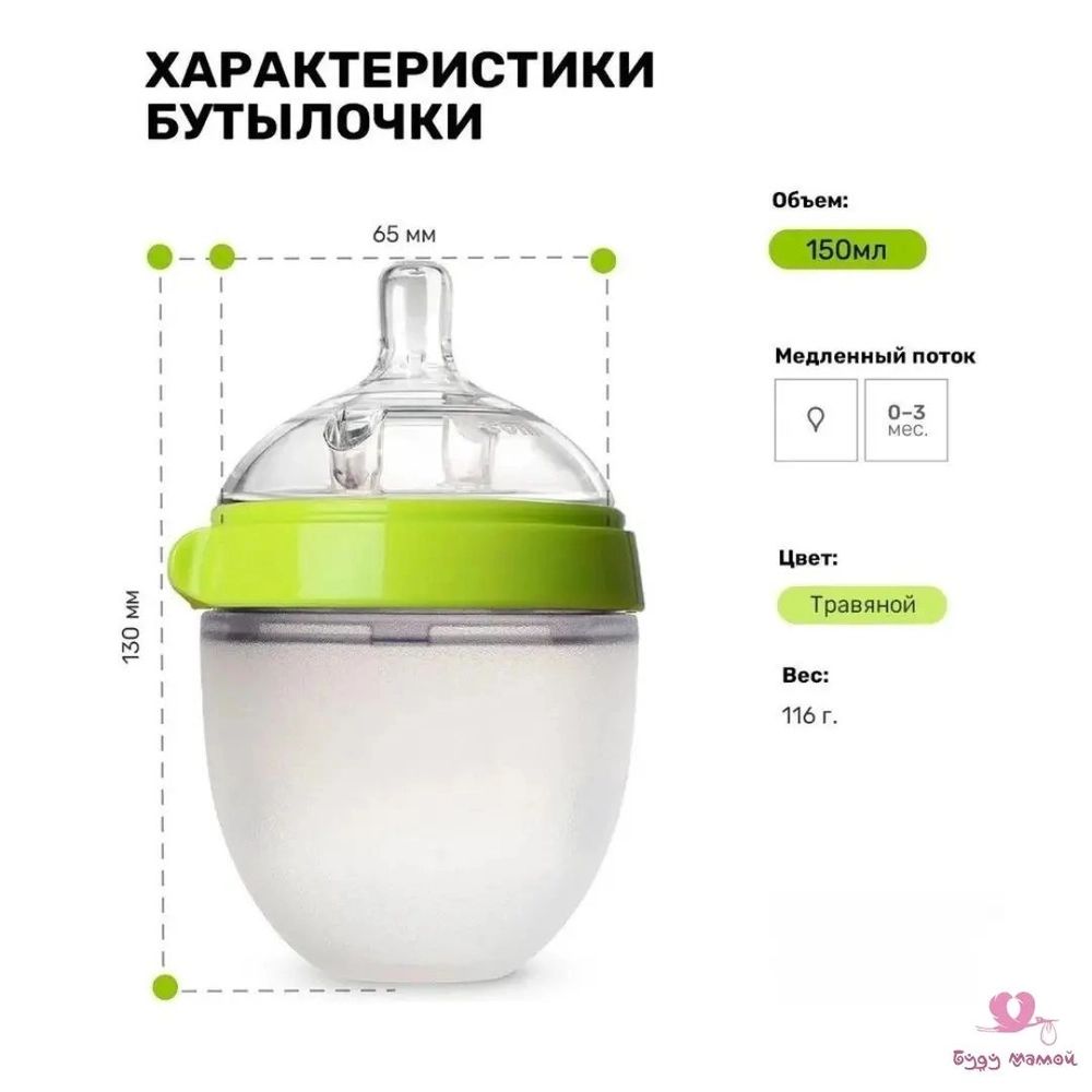 Бутылочка для кормления,150мл., с ручками, силиконовая колба, цвет зеленый